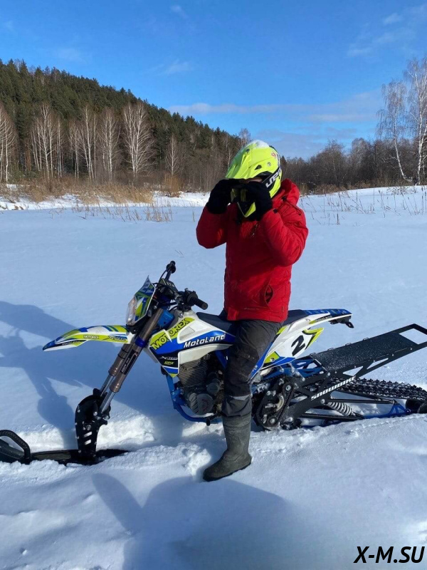 Folk 121 от Snowbike — универсальный гусеничный комплект для внедорожных мотоциклов. Гусеничный мотоцикл (СНОУБАЙК) это, по сути, одноколейный снегоход. Вы получаете возможность продлить мото сезон и эксплуатировать мотоцикл не только летом но и зимой.