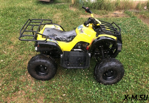 Квадроцикл ABM NINJA 110 по низкой цене с доставкой в любой регион России. Он оснащен двигателем, объемом в 110 см3, в котором спрятаны 7,5 лошадиных сил. Благодаря четырехтактному двигателю на один цилиндр квадроцикл может развивать скорость до 55 км/ч. При всех преимуществах, расход топлива также радует – около 3 л/100 км. Запускается двигатель при помощи кик-стартера или электростартера.