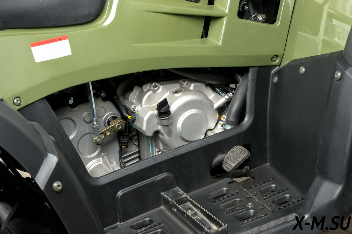 Подключаемый полный привод с блокировкой дифференциала значительно улучшает проходимость квадроцикла и его управляемость на сложных участках дороги, позволяя эффективно распределять крутящий момент между осями и предотвращать занос.