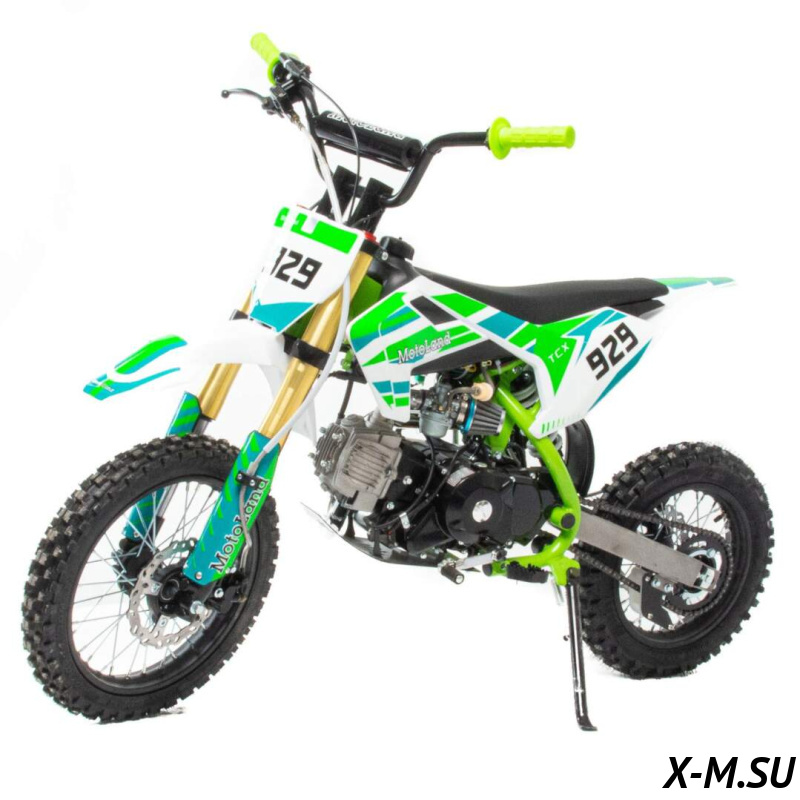 Питбайк Motoland TCX125 14/12  идеален для поездок по грунтовым дорогам и бездорожью. Хорошо чувствует себя на мягком и среднем грунте, разгоняется до 90 км/ч. Оснащён спортивными траверсами, весит всего 70 кг.